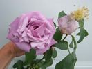 Hybrid Tea. Lilac, fuchsia / magenta edges. Strong fragrance. Large, full (26-40 petals), borne mostly solitary, high-centered bloom form. Blooms in flushes throughout the season. USDA zone 6b and warmer. Height: 3' to 4' (90 to 120cm). Width: up to 2' (up to 60cm). Reimer Kordes (1922-1997) (1984).