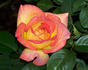 Hybrid Tea / Large-Flowered. Red blend, yellow reverse. Mild fragrance. Double (17-25 petals), high-centered to cupped bloom form. Blooms in flushes throughout the season. USDA zone 6b and warmer. Height of 3' to 4' 7" (90 to 140 cm). Width of 35" to 43" (90 to 110 cm). Joseph F. Winchel (1998).