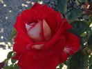 Miniature. Red, white reverse, ages to lighter . Flowers medium red with white base. Moderate fragrance. Medium, full (26-40 petals), borne mostly solitary, high-centered bloom form. Blooms in flushes throughout the season. USDA zone 6b and warmer. Height of up to 2' (up to 60 cm). Pete & Kay Taylor (1991).
