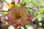 Floribunda. (Series: Canadian Artists Series) Yellow, pink edges, ages to cream . None to mild, rose fragrance. Medium, semi-double (9-16 petals), borne mostly solitary, in small clusters bloom form. Blooms in flushes throughout the season. USDA zone 2b and warmer. Height: 2' to 39" (60 to 100cm). Width: 28" to 45" (70 to 115cm). Agriculture Canada, Davidson (2003), Dyck (2003).