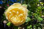 Shrub. (Series: English Rose Collection) Yellow, buff shading. Moderate, opinions vary fragrance. Large, very full (41+ petals), in small clusters bloom form. Blooms in flushes throughout the season. USDA zone 5b through 10a. Height: 39" to 42" (100 to 105cm). Width: 3' (90cm). David C. H. Austin (1926-2018) (1991).