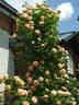 Climber, Large-Flowered Climber, Shrub. Yellow, orange shading. Strong fragrance. Large, very full (41+ petals), old-fashioned, quartered, rosette bloom form. Once-blooming spring or summer. USDA zone 4b through 9b. Height of 6' to 20' (185 to 610 cm). Width of 6' to 8' (185 to 245 cm). Reimer Kordes (1922-1997) (1956).