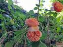 Shrub. English Rose Collection. Orange or orange-red. Strong, fruity fragrance. Medium, very full (41+ petals), in small clusters, cupped, rosette bloom form. Blooms in flushes throughout the season. USDA zone 6b through 9b (default). Height of 47" (120 cm). David C. H. Austin (1926-2018) (1992).
