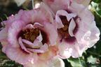 Floribunda, Hybrid Hulthemia persica. Lilac - pink, purple center. Mild to strong fragrance. Medium to large, semi-double to double, cluster-flowered, in small clusters, cupped bloom form. Blooms in flushes throughout the season. Height of up to 4' 7" (up to 140 cm). Width of up to 32" (up to 80 cm). Peter J. James (2004).