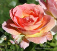 Hybrid Tea. Yellow and pink. The blossoms are Naples Yellow and strongly edged with Venetian Pink on opening and turning to Neyron Rose when fully open.. Strong, spice, sweet fragrance. Full (26-40 petals), borne mostly solitary, cluster-flowered, in small clusters, cupped, high-centered bloom form. Prolific, blooms in flushes throughout the season. USDA zone 7b and warmer. Height: 47" to 4¼' (120 to 130cm). Width: 4'7" (140cm). Daniel Tracy (1992).