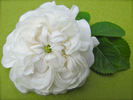 Centifolia, Damask. White or white blend. Strong fragrance. Medium, double (17-25 petals), button-eye, cupped bloom form. Once-blooming spring or summer. USDA zone 4b through 9b. Height: 4' to 6'7" (120 to 200cm). Width: 4' to 5' (120 to 150cm). Julien-ALEXANDRE Hardy (1831).