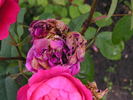 Gallica / Provins, Miscellaneous OGR. Deep pink to carmine-red. Strong fragrance. Medium, semi-double (9-16 petals), cupped bloom form. Once-blooming spring or summer. USDA zone 3b through 8b. Height of 3' to 5' (90 to 150 cm). Width of 3' (90 cm). Unknown (1160).