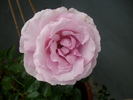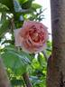 Hybrid Tea. Light pink, darker center. Strong, damask, musk, myrrh, rose fragrance. Large, very full (41+ petals), borne mostly solitary, cluster-flowered, in small clusters, cupped, old-fashioned bloom form. Blooms in flushes throughout the season. USDA zone 7b and warmer. Height of 3' to 4' (90 to 120 cm). Alain Meilland (1940-....) (2000).