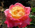 Hybrid Tea. Salmon-pink, pink edges, golden-yellow . Moderate, myrrh fragrance. Very large, very full (41+ petals), borne mostly solitary, exhibition bloom form. Blooms in flushes throughout the season. USDA zone 7b and warmer. Height: 4' to 6' (120 to 185cm). Peter Ping Lim :林 彬 (1991), Jerry F. Twomey (1991).