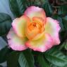 Floribunda. Yellow blend, red edges. Strong fragrance. Large, double (17-25 petals), borne mostly solitary, high-centered bloom form. Blooms in flushes throughout the season. USDA zone 6b through 10b. Height of 30" to 6' (75 to 185 cm). Width of 2' to 4' (60 to 120 cm). John Sheridan (1979).