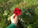Hybrid Tea. Dark red. Strong, rose fragrance. Medium, very full (41+ petals), borne mostly solitary, high-centered bloom form. Blooms in flushes throughout the season. USDA zone 6b and warmer. Height of 3' to 6' (90 to 185 cm). Width of up to 32" (up to 80 cm). W. Kordes & Sons (1991).