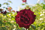 Climber, Hybrid Tea, Cl.. Dark red. Strong fragrance. Very large, very double bloom form. Blooms in flushes throughout the season. USDA zone 6b and warmer. Height of 10' to 12' (305 to 365 cm). Millar Bros. (1941), Naungayan (1946), Richardson (1944).