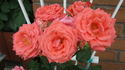 Climber, Large-Flowered Climber.  Salmon-pink, lighter reverse.  Strong fragrance.  Medium to large, very full (41+ petals), borne mostly solitary, cluster-flowered, in small clusters bloom form.  Blooms in flushes throughout the season.  USDA zone 4b through 9b.  Height of 6' to 12' (185 to 365 cm).  Width of 6' (185 cm). William A. Warriner (1975).
