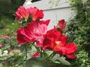 Floribunda, Cl., Large-Flowered Climber.  Red blend, stripes.  Apple, rose fragrance.  Large, semi-double (9-16 petals) bloom form.  Blooms in flushes throughout the season.  USDA zone 6a through 9b.