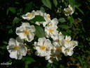 Found Rose, Hybrid Musk.  White, yellow stamens.  Strong fragrance.  Small, single to semi-double, in large clusters bloom form.  Continuous (perpetual) bloom throughout the season.  USDA zone 4b through 10b.  Height of 7' to 10' (215 to 305 cm).  Width of 6' to 12' (185 to 365 cm). Mike Darlow (1993).