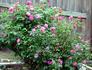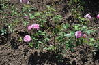 China / Bengale. Pink. Moderate fragrance. Medium, semi-double to double, in small clusters, cupped-to-flat bloom form. Blooms in flushes throughout the season. USDA zone 6a through 10b. Height of 3' to 10' (90 to 305 cm). Width of 30" to 6½' (75 to 200 cm). John Parsons (1793).
