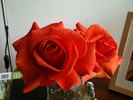 Florists Rose, Hybrid Tea. Dark red. None / no fragrance. Large, very full (41+ petals), borne mostly solitary, high-centered bloom form. Blooms in flushes throughout the season. USDA zone 7b and warmer. Height: up to 6' (up to 185cm). Jacques Mouchotte (2000).