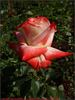 Hybrid Tea. Coral, peach shading. Strong, fruity, opinions vary fragrance. Large, full (26-40 petals), borne mostly solitary, cluster-flowered, in small clusters, exhibition, high-centered to cupped bloom form. Blooms in flushes throughout the season. USDA zone 7b and warmer. Height: 31" to 4' (80 to 120cm). Width: 2' to 28" (60 to 70cm). Gareth Fryer (1948-....) (1991).