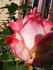 Hybrid Tea. Cream, pink edges, crimson shading, yellow undertones. Iris fragrance. Mild to strong, raspberry, tea fragrance. Very large, very full (41+ petals), borne mostly solitary, in small clusters, high-centered, reflexed bloom form. Blooms in flushes throughout the season. USDA zone 6b through 10b. Height: 30" to 5' (75 to 150cm). Width: 2' to 5' (60 to 150cm). Reimer Kordes (1922-1997) (1957).
