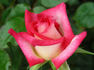 Miniature. White, red edges, white reverse. None / no fragrance. Medium-large, double (17-25 petals), borne mostly solitary, exhibition, high-centered bloom form. Blooms in flushes throughout the season. Height of 18" to 30" (45 to 75 cm). Frank A. Benardella (2004).