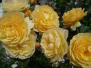 Shrub. English Rose Collection. Apricot - yellow, darker center, lighter edges. Strong, myrrh fragrance. Medium to large, very full (41+ petals), cluster-flowered, in small clusters, cupped bloom form. Blooms in flushes throughout the season. USDA zone 5b through 10b. Height of 39" to 4' (100 to 120 cm). Width of 2' to 3' (60 to 90 cm). David C. H. Austin (1926-2018) (1983).