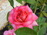 Hybrid Tea. Pink blend. Flowers phlox-pink, base canary-yellow,. Mild fragrance. Very large, full (26-40 petals), borne mostly solitary, cupped bloom form. Blooms in flushes throughout the season. USDA zone 7b and warmer. Height of 4½' to 6' 7" (135 to 200 cm). Stanley C. Johnston (1960).