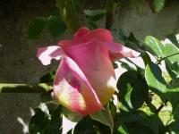 Hybrid Tea. Pink blend. Flowers phlox-pink, base canary-yellow,. Mild fragrance. Very large, full (26-40 petals), borne mostly solitary, cupped bloom form. Blooms in flushes throughout the season. USDA zone 7b and warmer. Height of 4½' to 6' 7" (135 to 200 cm). Stanley C. Johnston (1960).