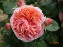 Shrub. English Rose Collection. Salmon-pink. Moderate, myrrh fragrance. Large, very full (41+ petals), borne mostly solitary, in small clusters, cupped, rosette bloom form. Blooms in flushes throughout the season. Height of 35" to 39" (90 to 100 cm). Width of up to 2' (up to 60 cm). David C. H. Austin (1926-2018) (2011).