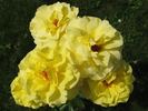 Shrub. English Rose Collection. Deep yellow. Mild, opinions vary fragrance. Medium, very full (41+ petals), in small clusters, old-fashioned, rosette bloom form. Blooms in flushes throughout the season. USDA zone 5b through 10b. Height of 2' to 3' (60 to 90 cm). David C. H. Austin (1926-2018) (1994).