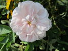 Damask Perpetual, Hybrid Spinosissima. White, light pink shading. [Light pink.]. Moderate fragrance. Medium to large, very full (41+ petals), flat bloom form. Occasional repeat later in the season. USDA zone 3b through 9b. Height of 6' to 8' (185 to 245 cm). James Lee (1821).