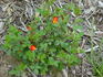 Miniature.  Orange blend.  Buds pale yellow; flowers orange-red, light yellow reverse.  None to mild fragrance.  Small to medium, double (17-25 petals), cluster-flowered, in small clusters bloom form.  Blooms in flushes throughout the season.  USDA zone 6b through 9b (default).  Height of up to 15" (up to 40 cm).   Ralph S. Moore (2006).