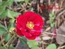 Hybrid Hulthemia persica, Shrub.  Red blend.  Bright yellow buds open to Chinese red inside with a deep red eye.  None / no fragrance.  Medium-large, single (4-8 petals), cluster-flowered, in small clusters bloom form.  Blooms in flushes throughout the season.  USDA zone 6b through 9b (default).  Height of 3' to 5' (90 to 150 cm).  Width of up to 3' (up to 90 cm). Ralph S. Moore (2006).