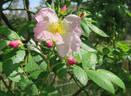 Climber, Hybrid Multiflora.  Light pink, darker edges.  Strong fragrance.  Single (4-8 petals), in large clusters bloom form.  Once-blooming spring or summer.