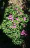Polyantha.  Rose-pink, ages to dark purple .  Small to medium, full (26-40 petals), in small clusters, old-fashioned bloom form.  Prolific, continuous (perpetual) bloom throughout the season.  Height of up to 2' (up to 60 cm).