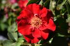 Shrub.  Cherry-red.  Mild fragrance.  Medium, very full (41+ petals), in small clusters, button-eye, old-fashioned bloom form.  Prolific, continuous (perpetual) bloom throughout the season.  Height of up to 39" (up to 100 cm).   Warren Millington (2016).