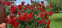 Climber, Large-Flowered Climber. Red. Mild fragrance. Medium, double (17-25 petals), cluster-flowered, in small clusters bloom form. Blooms in flushes throughout the season. USDA zone 6b through 9b (default). Height of 6' 7" to 8' 2" (200 to 250 cm). Width of 39" to 43" (100 to 110 cm). W. Kordes & Sons (2003).