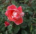 Floribunda. Orange-red, white edges, white reverse. Orange-red, silver eye & reverse. Mild fragrance. Large, flat bloom form. Blooms in flushes throughout the season. USDA zone 6b and warmer. Height of 30" to 47" (75 to 120 cm). Width of up to 2' (up to 60 cm). Samuel Darragh (1932-2019) McGredy IV (1969).