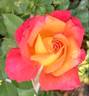Mini-Flora. Orange blend with reverse yellow blend. None to mild fragrance. Medium, double (17-25 petals), borne mostly solitary bloom form. Blooms in flushes throughout the season. Height of 42" (105 cm). Verlie W., Jr. Wells (2012).