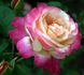 Floribunda. Pink blend, apricot center, rose-pink reverse, ages to rose-pink . Mild fragrance. Medium, full (26-40 petals), cupped-to-flat bloom form. Prolific, continuous (perpetual) bloom throughout the season. Height of up to 28" (up to 70 cm). Warren Millington (2009).