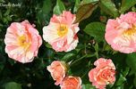 Floribunda. Orange-pink. Mild fragrance. Medium, double (17-25 petals), cluster-flowered, in large clusters bloom form. Blooms in flushes throughout the season. Height of 3' (90 cm). Warren Millington (2010).