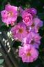 Large-Flowered Climber. Rose-pink. Strong, fruity fragrance. Medium, very full (41+ petals), in small clusters, old-fashioned bloom form. Moderate, blooms in flushes throughout the season. Height of up to 9' 10" (up to 300 cm). Warren Millington (2013).