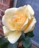 Grandiflora, Hybrid Tea. Butter-yellow, lighter edges, ages to cream . Buttercream yellow. Mild fragrance. Large, full (26-40 petals), borne mostly solitary, in small clusters, cupped-to-flat bloom form. Blooms in flushes throughout the season. Height: 5½' (165cm). Width: up to 4½' (up to 135cm). Michèle Meilland Richardier (2006).