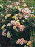 Floribunda. Yellow, ages to salmon-pink . None / no fragrance. Medium, full (26-40 petals), cluster-flowered, cupped, flat, ruffled bloom form. Blooms in flushes throughout the season. USDA zone 5b and warmer. Height of 2' to 3' (60 to 90 cm). Width of 16" to 20" (40 to 50 cm). Alain Meilland (1940-....) (2000).