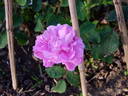 Damask Perpetual.  Pink to light pink.  Moderate fragrance.  Large, very double bloom form.  Spring or summer flush with scattered later bloom.   Unknown (1846).