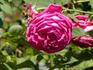 Hybrid Perpetual. Violet - purple, crimson edges. Medium to large, double (17-25 petals), cluster-flowered, high-centered to cupped bloom form. Occasional repeat later in the season. Verdier (1861), Verdier fils aîne (1861).