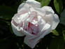 Gallica / Provins. White, pink mottling. Strong fragrance. Medium, double (17-25 petals), flat bloom form. Once-blooming spring or summer. USDA zone 4b through 8b. Jean-Pierre Vibert (1845).