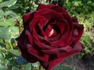 Hybrid Tea. Dark red, light yellow reverse. . Flowers dark velvety red, finished black-red, reverse light cream yellow. None to mild fragrance. Large, full (26-40 petals), borne mostly solitary, exhibition, high-centered bloom form. Continuous (perpetual) bloom throughout the season. Height: 4' to 6' (120 to 185cm). Meilland (1940-....) (2008), Meilland International (2008).