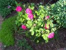 This plant has remained small. Maybe 1.5 feet across, 2.5 feet tall. Fragrant, mannerly, and always with a few blooms.