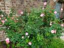 Absolutely delightful, rare China rose that behaves like a small climber. Gorgeous pink-on-white blooms all year long. Healthy foliage but VICIOUS thorns... definitely not a climber for high-traffic areas.