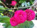 Hybrid Tea.  Carmine-red.  Musk fragrance.  Large, full (26-40 petals), in small clusters, cupped bloom form.  Blooms in flushes throughout the season.  Height of 31" to 35" (80 to 90 cm).   Francois Dorieux II (1955-2015) (2015).